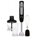 Домашним блендером удобно пользоваться за счет прорезиненной рукоятки, а так же сменным прикручивающимся насадкам в комплекте не только для измельчения, а также венчик для взбивания и ёмкость объемом 600мл. Насадки изготовлены из пищевой нержавеющей стали, удобно моется и не требует дополнительного ухода.