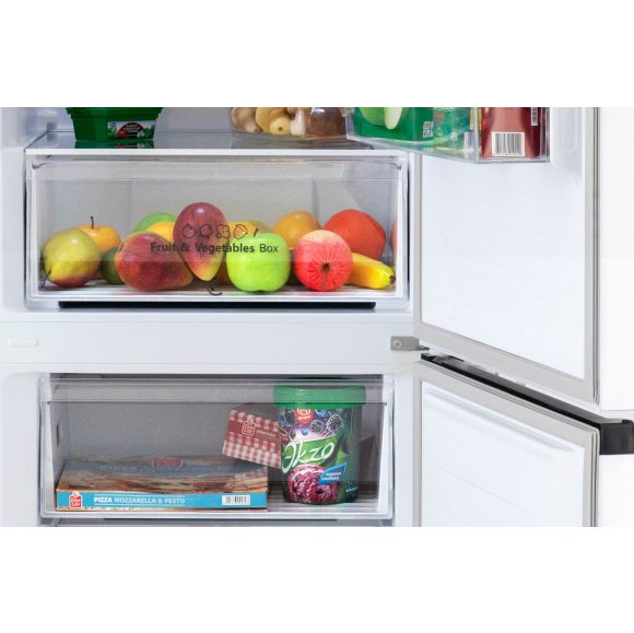 Разместить продукты можно на полках из закаленного стекла и ящиках для хранения овощей и фруктов, кроме того, в комплектацию входят подставка для яиц и лоток для льда.
