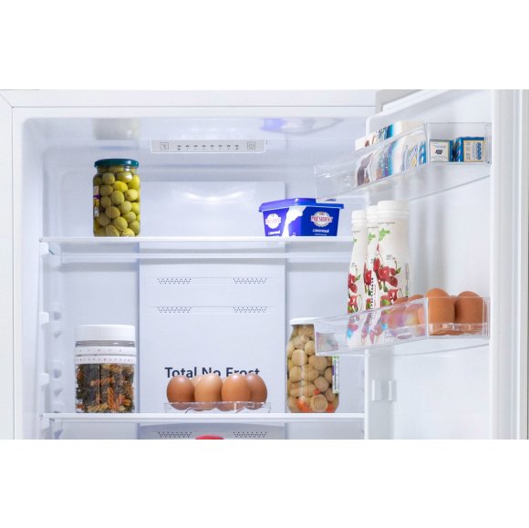 Холодильник имеет систему охлаждения Total No Frost, благодаря которой не образуется наледь на стенках, поэтому полностью исключается принудительное размораживание.