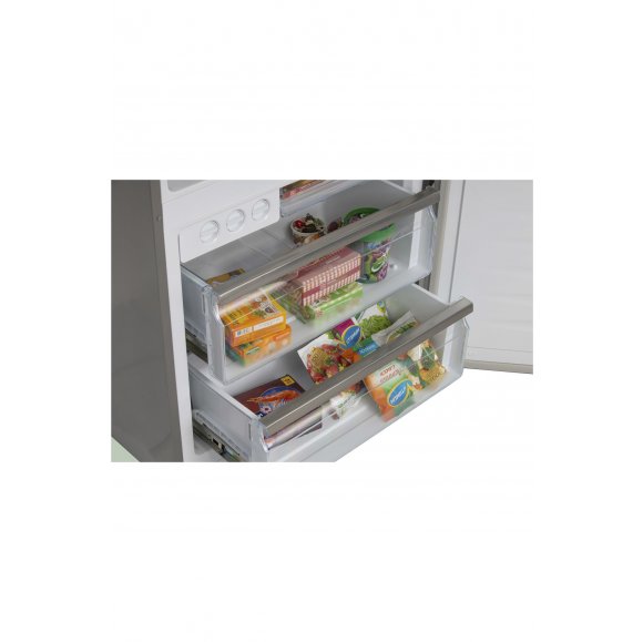 Кроме того, в данной модели предусмотрены съемные моющиеся уплотнители, полки из закаленного стекла, 1 большой ящик для хранения овощей и фруктов и 3 ящика в морозильном отделении.
