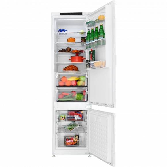 Встраиваемый холодильник HIBERG RFCI-465 NFW с общим объемом 315л идеально впишется в любой кухонный гарнитур, буквально «сливаясь» с ним, а возможность перенавешивания двери создает удобство ее расположения и открывания с нужной стороны.