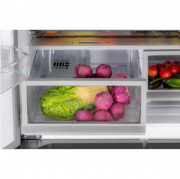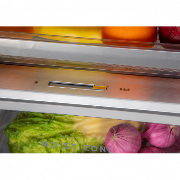 Мембранная технология автоматического поддержания уровня влажности до 90% в ящиках холодильной камеры улучшает условия хранения овощей, фруктов и зелени. Продукты дольше сберегают все полезные свойства и естественную свежесть. Уровень влажности можно регулировать с помощью специального бегунка, расположенного рядом с ящиком.