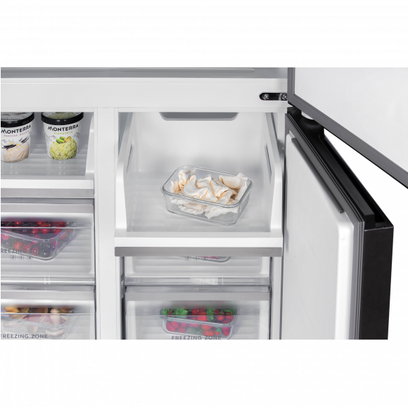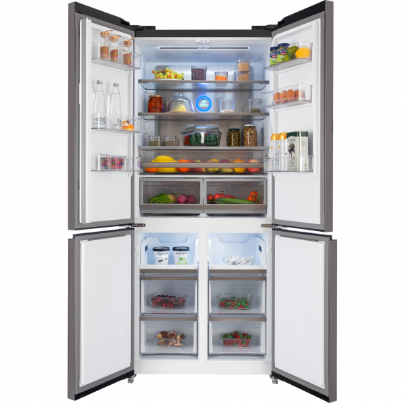 Четырехдверный холодильник HIBERG RFQ-600DX NFDs в эффектном цвете «темный камень» с возможностью встраивания идеально впишется в кухонный гарнитур, создаст стильную и уютную атмосферу. Модель общим объемом 526 литров предназначена для хранения большого количества продуктов и напитков в частных и загородных домах, просторных квартирах и современных крупных офисах.