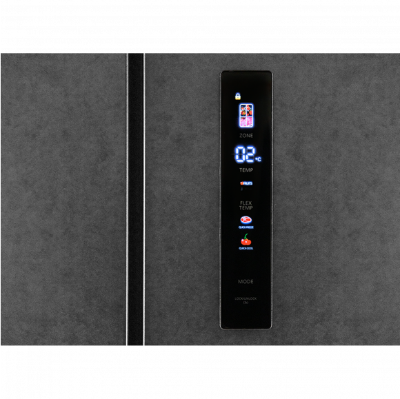 Холодильник оснащен электронной панелью управления с цветным дисплеем, на котором можно установить точную температуру или выбрать необходимый режим.