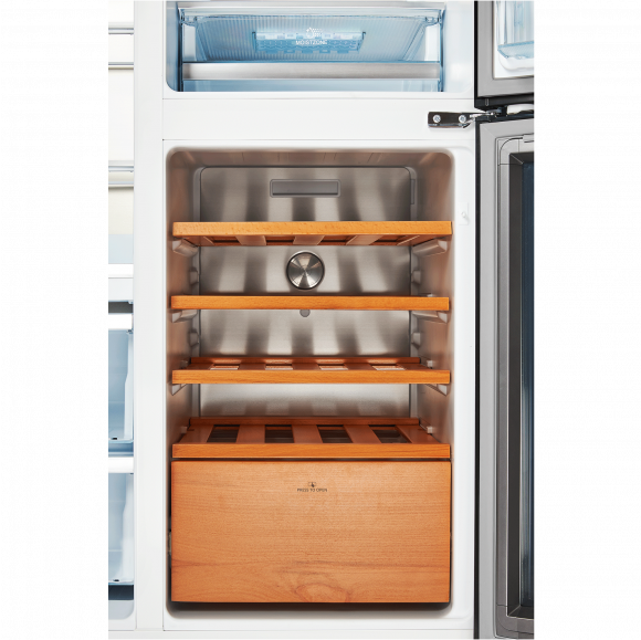 Режим интеллектуального управления «SMART MODE» - температура в холодильной камере автоматически переключается на +4°С, в морозильнике -18°С, а винном отделении +12°С.