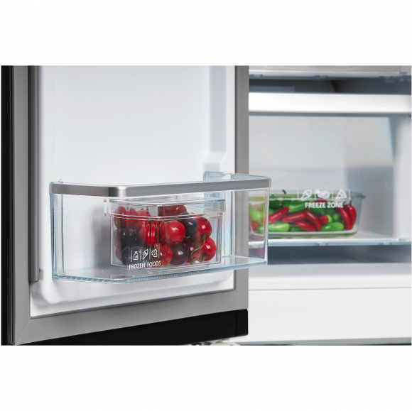 Технология Metal Cooling в морозильной и холодильной камере, при частом открытии двери, позволяет дольше удерживать холод внутри. Оптимальная температура восстанавливается быстрее и продукты дольше остаются свежими.