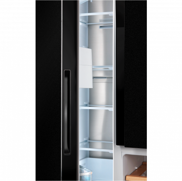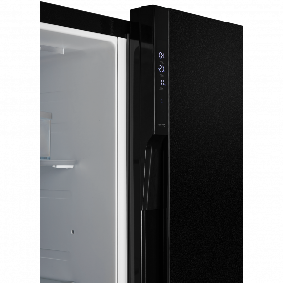 Холодильник HIBERG RFS-700DX NFGB выполнен в стильном дизайне и оригинальном цвете «черное мерцающее стекло». Модель станет прекрасным решением для тех, кто привык хранить большие объемы продуктов с максимальным удобством.