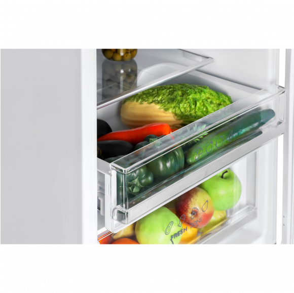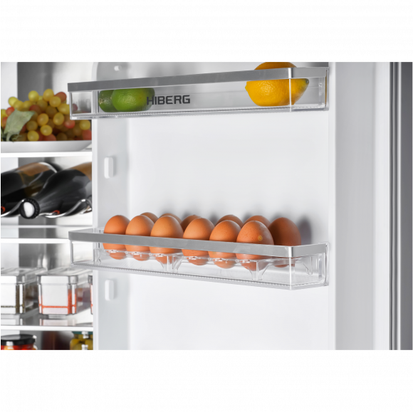 Встраиваемый холодильник HIBERG RFCB-350 NFW с общим объемом 273 л идеально впишется в кухонный гарнитур, буквально «сливаясь» с ним, а возможность перенавешивания двери создает удобство открывания с нужной стороны.