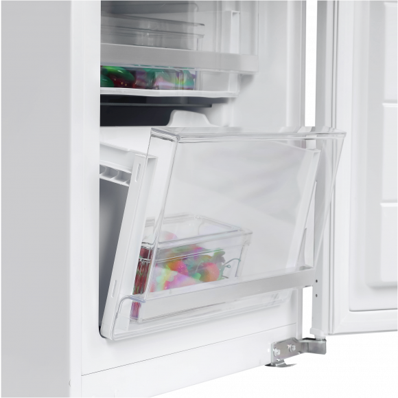 - 3 прозрачных ящика в морозильном отделении. Нижний ящик повышенного объема, что позволяет поместить и длительно хранить большие куски мяса, курицу целиком и другие объемные замороженные продукты