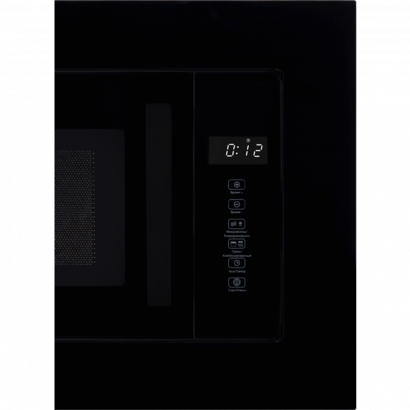Фасадная часть корпуса СВЧ выполнена из закаленного стекла в цвете «черное стекло». Дверца открывается с помощью навесной металлической ручки, а тип управления функционалом микроволновой печи электронный. Устройство оборудовано автоматической подсветкой внутри камеры, таймером, с помощью которого вы не пропустите завершение приготовления пищи, и защитой, в случае открытия дверцы детьми.
