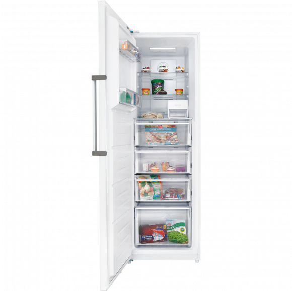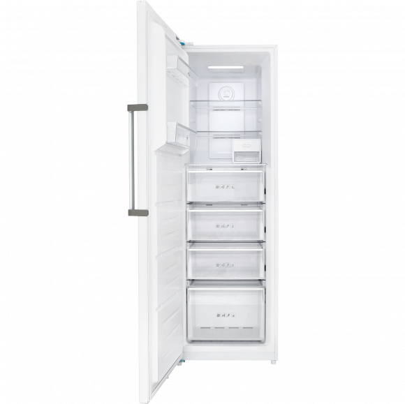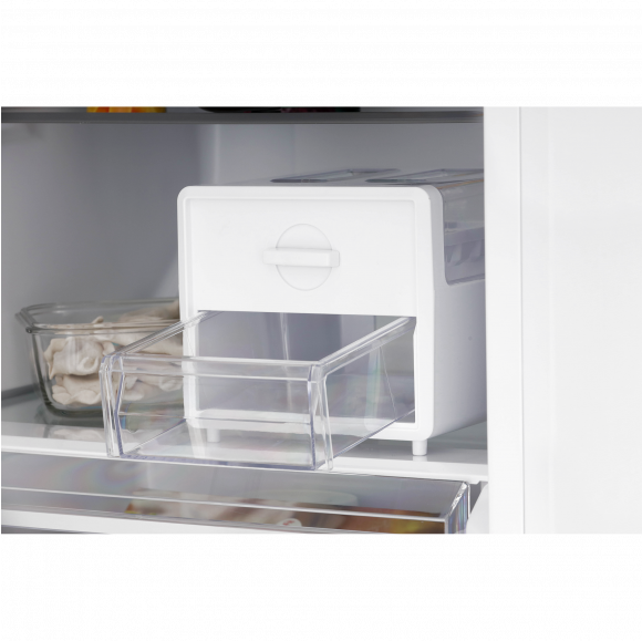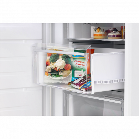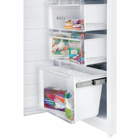 Морозильник, с общим объемом 304 л, оснащен ледогенератором внутри камеры, LED-освещением, а так же вместительными прозрачными ящиками и полками. В нижний ящик на направляющих и объемом целых 35 л можно вместить большое количество летних запасов, овощей, грибов и полуфабрикатов. Дверь морозильника открывается на 90 градусов, что удобно для свободного извлечения ящиков.
