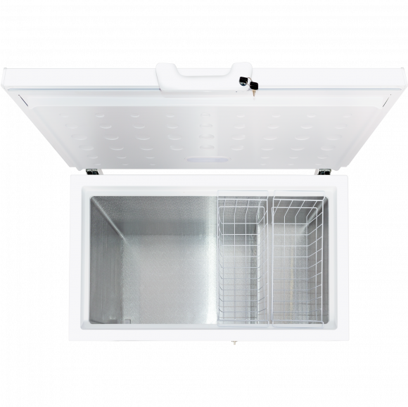 Боковые интегрированные ручки облегчают открытие тяжелой крышки морозильника.