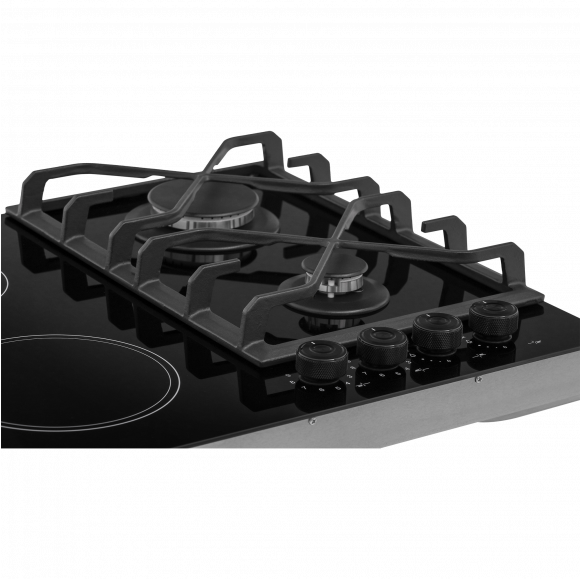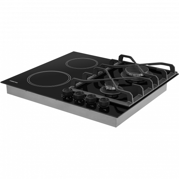 Комбинированная варочная панель HIBERG HM 6021 B соединяет в себе эстетику и функциональность, а так же премиум качество и удобство использования. Рабочая поверхность выполнена из стеклокерамики черного цвета и оснащена 4 конфорками. Уникальность данной модели в том, что она соединяет в себе два типа варочной поверхности: газовый и электрический. Рабочая поверхность с двумя электрическими конфорками имеет мощность 3000 Вт, диаметр и мощность конфорок разный, поэтому есть возможность использовать разную по форме и объему посуду. Кроме того, электрическая поверхность остывает постепенно, что позволяет поддерживать температуру только приготовленного блюда.