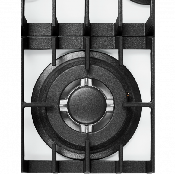На рабочей поверхности располагаются разные по диаметру и мощности пламени конфорки. WOK конфорка с тройным рядом пламени и мощностью 3,4 кВт позволяет ускорить закипание воды и использовать интенсивную скорость прожарки. Мощность газовых горелок можно регулировать с помощью металлических поворотных переключателей, которые находятся на фронтальной панели управления.