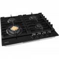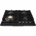 Газовая варочная поверхность HIBERG VM 60440 B выполнена из закаленного стекла в черном цвете, оснащена 4 конфорками с функциями: автоматический «электророзжиг» и «газ-контроль».