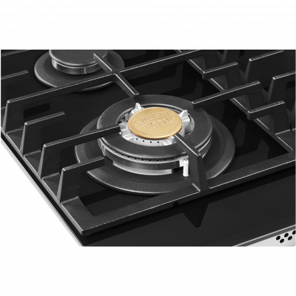 На рабочей поверхности располагаются разные по диаметру и мощности пламени конфорки. WOK конфорка с тройным рядом пламени и мощностью 3,4 кВт позволяет ускорить закипание воды и использовать интенсивную скорость прожарки. Мощность газовых горелок можно регулировать с помощью металлических поворотных переключателей, которые находятся на фронтальной панели управления.