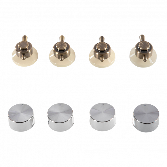 На рабочей поверхности располагаются разные по диаметру и мощности пламени конфорки. WOK конфорка с тройным рядом пламени и мощностью 3,4 кВт позволяет ускорить закипание воды и использовать интенсивную скорость прожарки. Мощность газовых горелок можно регулировать с помощью металлических поворотных переключателей, которые находятся на фронтальной панели управления.