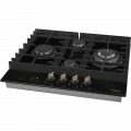 Рабочая поверхность выполнена из закаленного стекла – прочного и долговечного материала, на ней ромбовидно располагаются 4 конфорки, разные по диаметру и мощности огня. Если вы любите азиатскую кухню, то предусмотренная в данной модели WOK конфорка поможет вам в приготовлении любимых блюд.