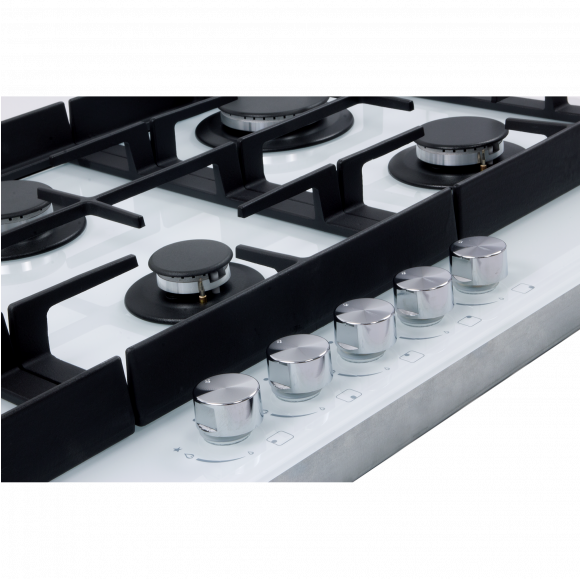Поверх конфорок на варочной панели установлены массивные и прочные чугунные решетки. Такие держатели из чугуна – привлекательны, эргономичны и очень устойчивы. В варочной поверхности HIBERG VM 9055 W эффективно продумана система безопасности при утечке газа. В случае пролива жидкости на варочную панель или затухания пламени от сквозняка, в конфорке срабатывает функция газ-контроль и подача газа прекращается.
