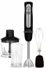 Домашним блендером удобно пользоваться за счет прорезиненной рукоятки, а так же сменным прикручивающимся насадкам в комплекте не только для измельчения, а также венчик для взбивания и ёмкость объемом 600мл. Насадки изготовлены из пищевой нержавеющей стали, удобно моется и не требует дополнительного ухода.