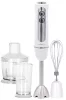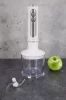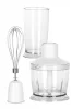 Домашним блендером удобно пользоваться за счет прорезиненной рукоятки, а так же сменным прикручивающимся насадкам в комплекте не только для измельчения, а также венчик для взбивания и ёмкость объемом 600мл. Насадки изготовлены из пищевой нержавеющей стали, удобно моется и не требует дополнительного ухода.