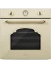 Выбор программы и настройка температуры осуществляется за счет механического управления. Расположенные на фронтальной части корпуса поворотные ручки регуляторов обеспечивают комфортную и точную настройку температуры и режимов готовки. Переключатели и ручка двери духового шкафа выполнены в винтажном стиле в цвете под латунь.