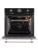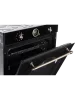 Изысканное исполнение духового шкафа черного цвета позволит сделать его аутентичным дополнением кухонных пространств, созданных в стиле классика, винтаж или прованс. Модель с механической панелью управления дополнена декоративными поворотными переключателями и ручкой дверцы в цвете состаренной латуни.