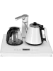 Удобство модели заключается в важной особенности - наличии сервировочного столика с электрическим чайником, который нагревается автоматически. В комплекте идет съемный стеклянный заварочный чайник.