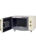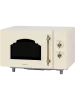 Фасадная часть микроволновой печи выполнена полностью из закаленного стекла, ручка и поворотные регуляторы в стиле ретро – металлические.