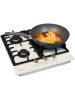 На рабочей поверхности располагаются разные по диаметру и мощности пламени конфорки. WOK конфорка с тройным рядом пламени позволяет ускорить закипание воды и использовать интенсивную скорость прожарки. Мощность газовых горелок можно регулировать с помощью металлических поворотных переключателей, которые находятся на фронтальной панели управления.