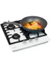 На рабочей поверхности располагаются разные по диаметру и мощности пламени конфорки. WOK конфорка с тройным рядом пламени и мощностью 3,4 кВт позволяет ускорить закипание воды и использовать интенсивную скорость прожарки. Мощность газовых горелок можно регулировать с помощью металлических поворотных переключателей, которые находятся на фронтальной панели управления.