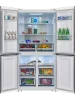 Холодильник состоит из морозильной и холодильной камеры повышенного объема. Общий объем составляет 545 л. 4 двери позволяют получить доступ к продуктам, не выпуская холод из остальной части холодильника, благодаря открыванию дверь в дверь. В модели предусмотрены ящики для хранения овощей и фруктов, а также полки, выполненные из закаленного стекла, которые можно легко извлечь и очистить. Удобно и единое пространство верхних полок холодильной камеры, которое позволяет размещать габаритные кастрюли и контейнеры.