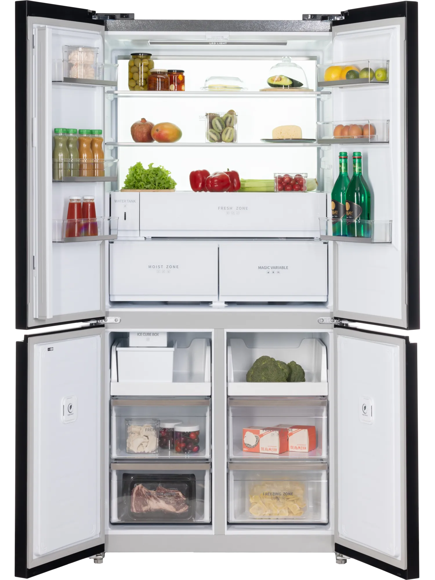 Стильный и вместительный четырехдверный холодильник HIBERG RFQ-555DX NFGW с автоматическим ледогенератором и зоной свежести – идеальный выбор для просторной кухни. Общий объем холодильника 618 литров. Цвет: белое мерцающее стекло.
