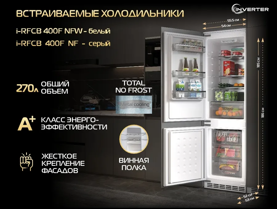 Представляем встраиваемые холодильники HIBERG i-RFCB 400F NF, выполненные в белом и сером цвете.