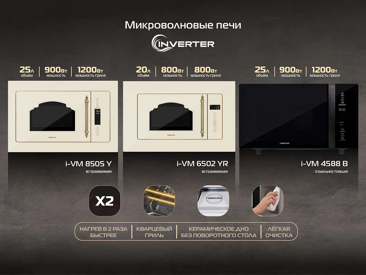 Новинки HIBERG: инверторные микроволновые печи.