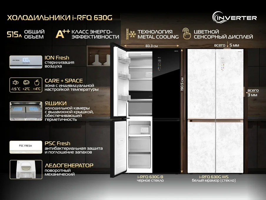 Новый холодильник HIBERG i-RFQ 630G – революция в хранении продуктов для большой семьи.