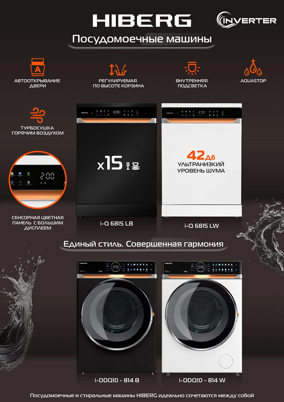 Посудомоечные машины HIBERG 6815 сочетают вместимость, продуманный функционал и современный дизайн. Независимо от модели, это удобное и надёжное решение для качественного ухода за посудой каждый день.