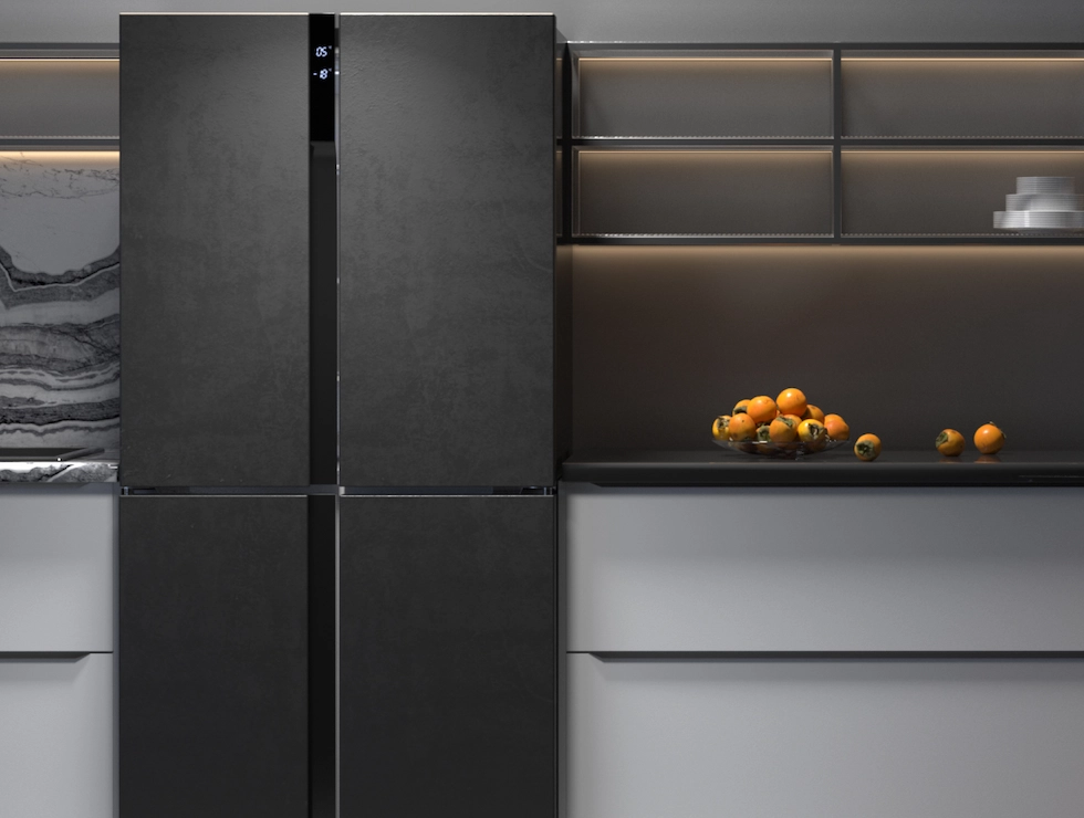 4 двери позволяют получить доступ к продуктам, не выпуская холод из остальной части холодильника, благодаря открыванию дверь в дверь. В модели предусмотрены ящики для хранения овощей и фруктов, а также полки из закаленного стекла, которые можно легко извлечь и очистить. Единое пространство верхних полок холодильной камеры позволяет размещать габаритные кастрюли и контейнеры.