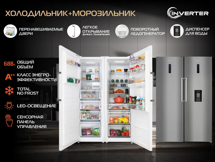 Обновленная комбинация HIBERG «холодильник i-RF 40D с морозильником i-FR 40» обеспечит бережное и долговременное хранение продуктов для всей семьи!